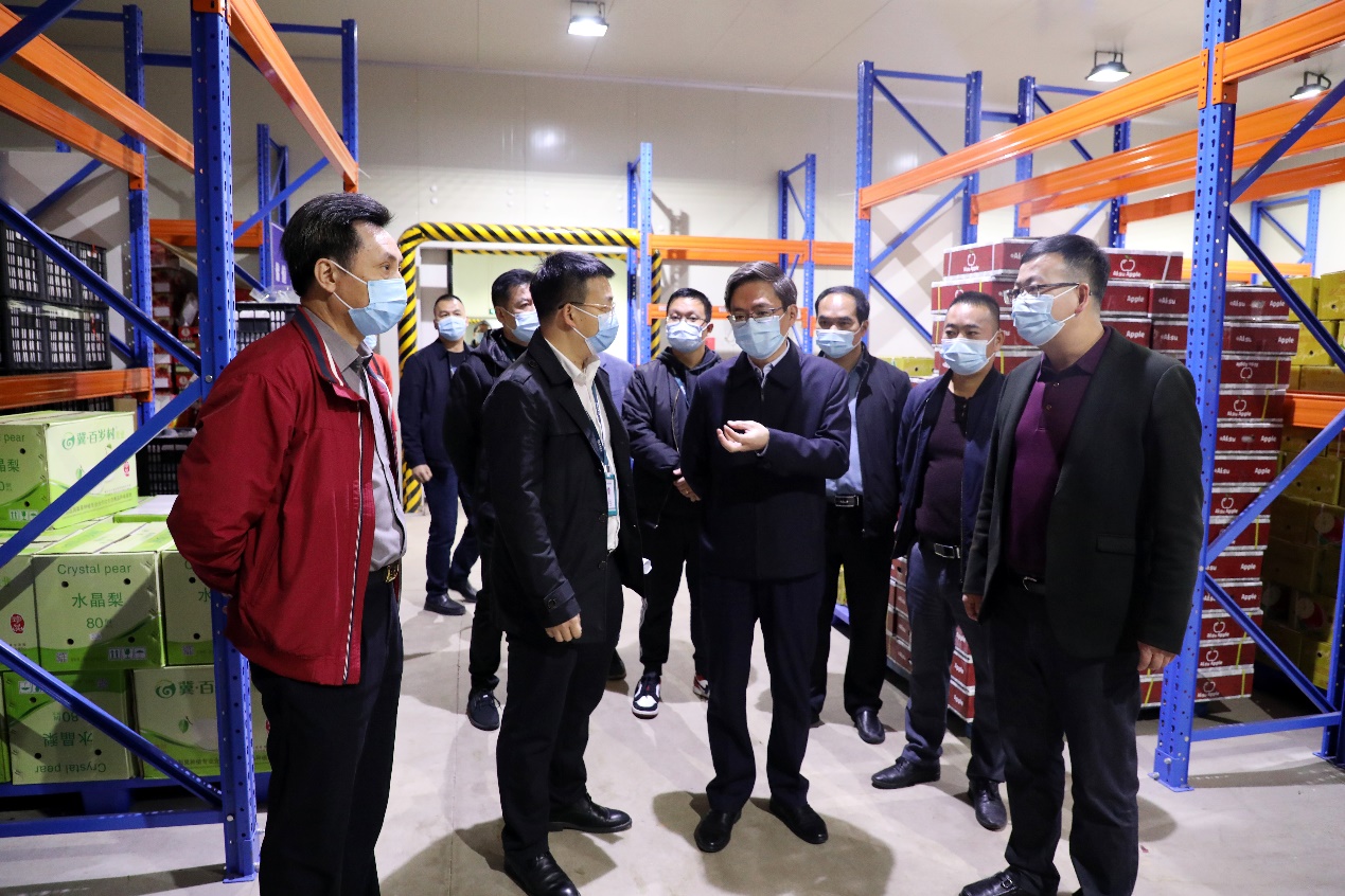 在夏商配送中心,文杰总经理一行实地查看了配送总仓多温冷库、非生鲜恒温库和蔬果冷链加工车间。他强调,相关单位和人员要进一步落实责任、强化举措,在食品安全、生产安全和冷链环节疫情防控等方面下足功夫;要密切关注市场形势,做好保供稳价工作,加强本地和外埠产销对接,多渠道组织货源,及时调配农副产品物资供应;要持续提升管理水平、软硬件设施和配送空间利用率,充分发挥现有资源优势,做好产品质量把控、配送效率提升和深加工项目提质工作,逐步做大做强配送业务。